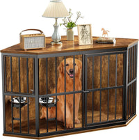 🐾 53" Corner Dog Kennel Wooden End Table – Space-Saving Crate with Built-In Bowl & Wide Top - United States